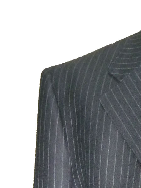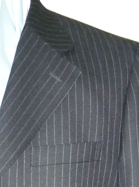 - 近年世代を問わず人気が集中しているスーツですが、光沢のあるストライプ地を使うことで、若いシルエットをイメージしつつ、貫禄を持たせました。