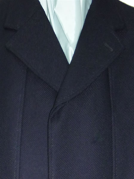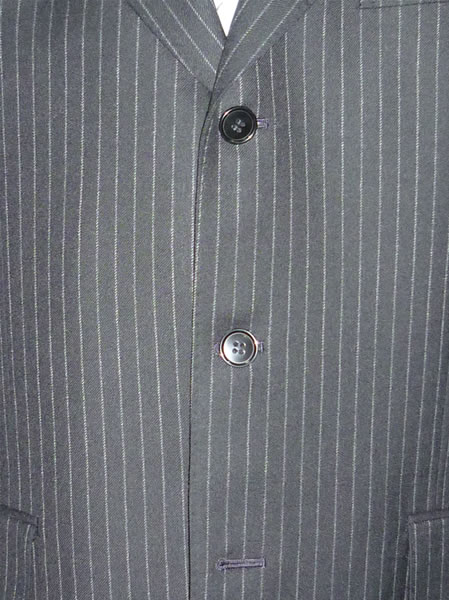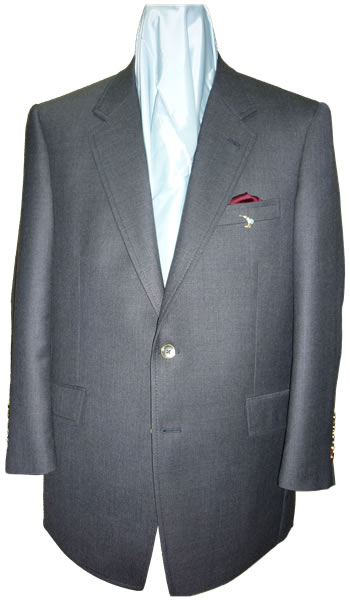- 一見シンプルなグレースーツですが、フロントボタンを赤糸でクロス掛けにし、袖ボタンは5個本切羽にしました。